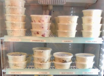 We serve 11 assorted AMAZING flavors of cream cheese!